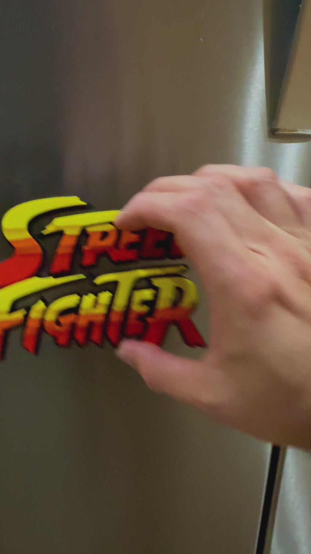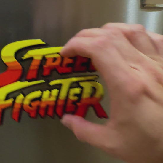 This 3D-printed fan art street fighter logo is perfect for toy and comic book displays but can be used for various other purposes. Designed for indoor use only, this made-to-order item is crafted on a professional-quality 3D printer. The logo typically features red orange and yellow colors.